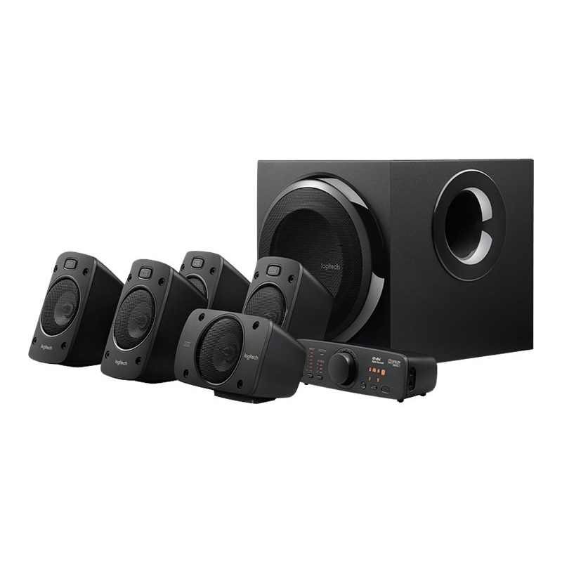 Los altavoces Logitech Z906 5.1 Thx Dolby tiene certificación THX ofrece 500 vatios (RMS) de sonido con calidad de sala de cine. Entradas digitales y analógicas, una consola de control digital fácil de leer e instalar y un mando a distancia inalámbrico le permiten tomar el control del sistema multimedia.